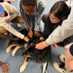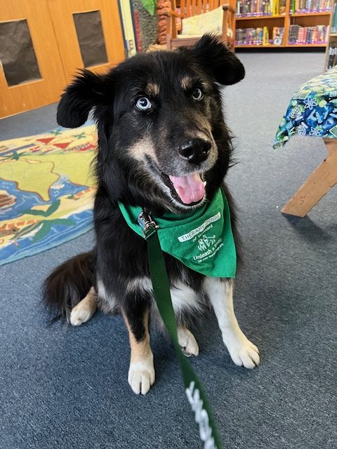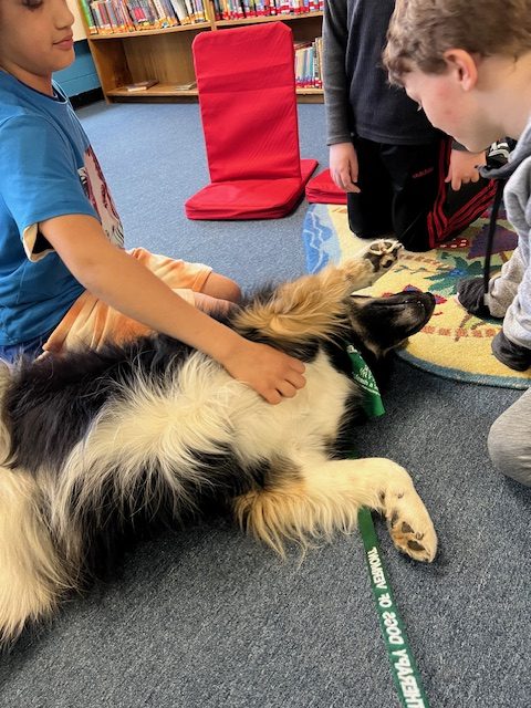 Early on, I thought that Nikki might have the temperament to be a therapy dog—and I was right. We easily passed the certification tests. Over eight years, we were a therapy dog team mostly visiting schools. Whenever I brought out the bandana she was required to wear for our visits, Nikki knew we were going to work and was a truly happy dog. I was happy, too, watching the joy and comfort she brought to so many children—and the adults who worked in the schools. Her favorite thing was to roll on her back inviting belly rubs. This delighted the kids who happily engaged in “belly rub time.” We would end each session with the kids with Nikki’s favorite trick to “sit pretty.”