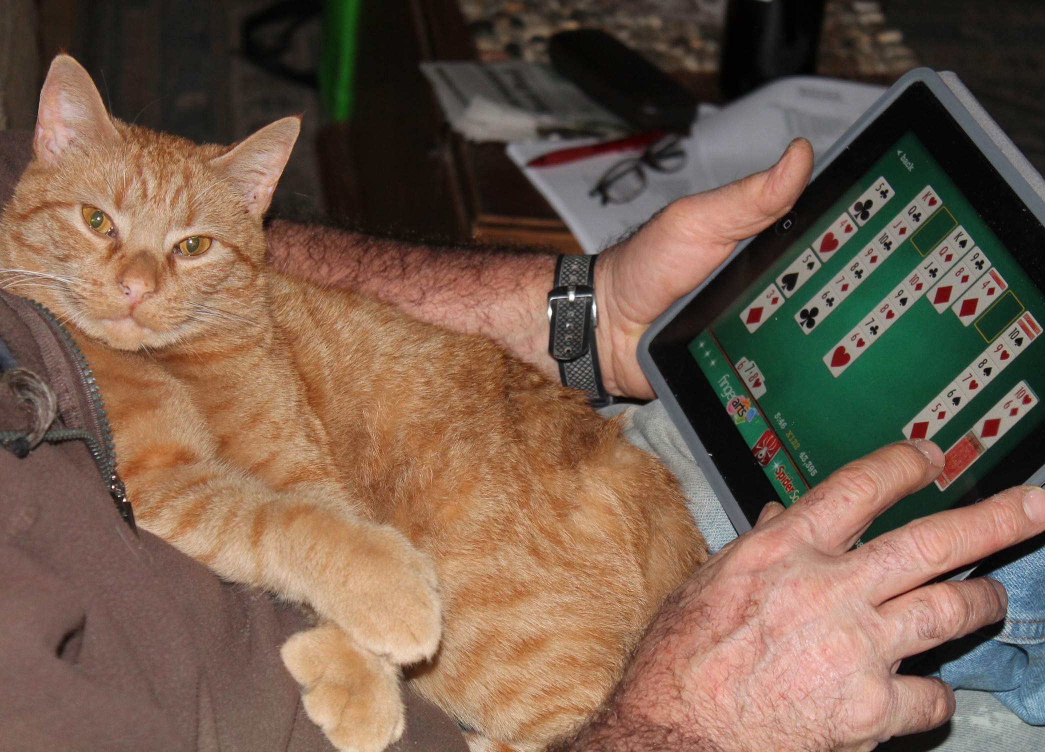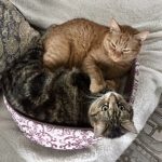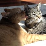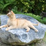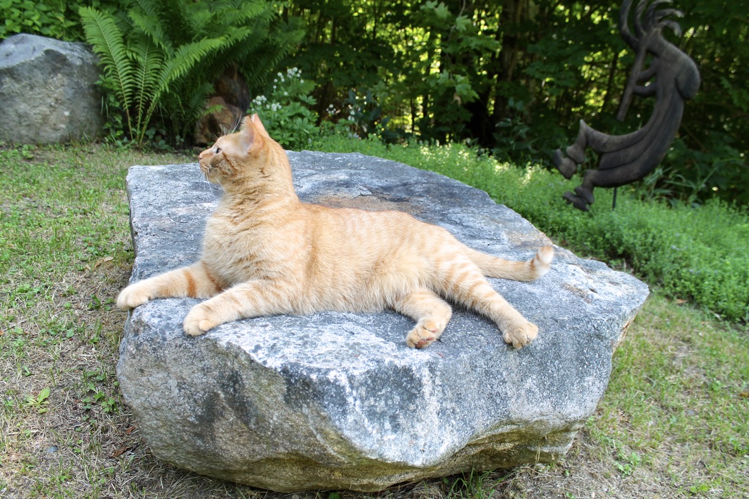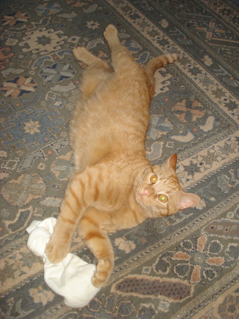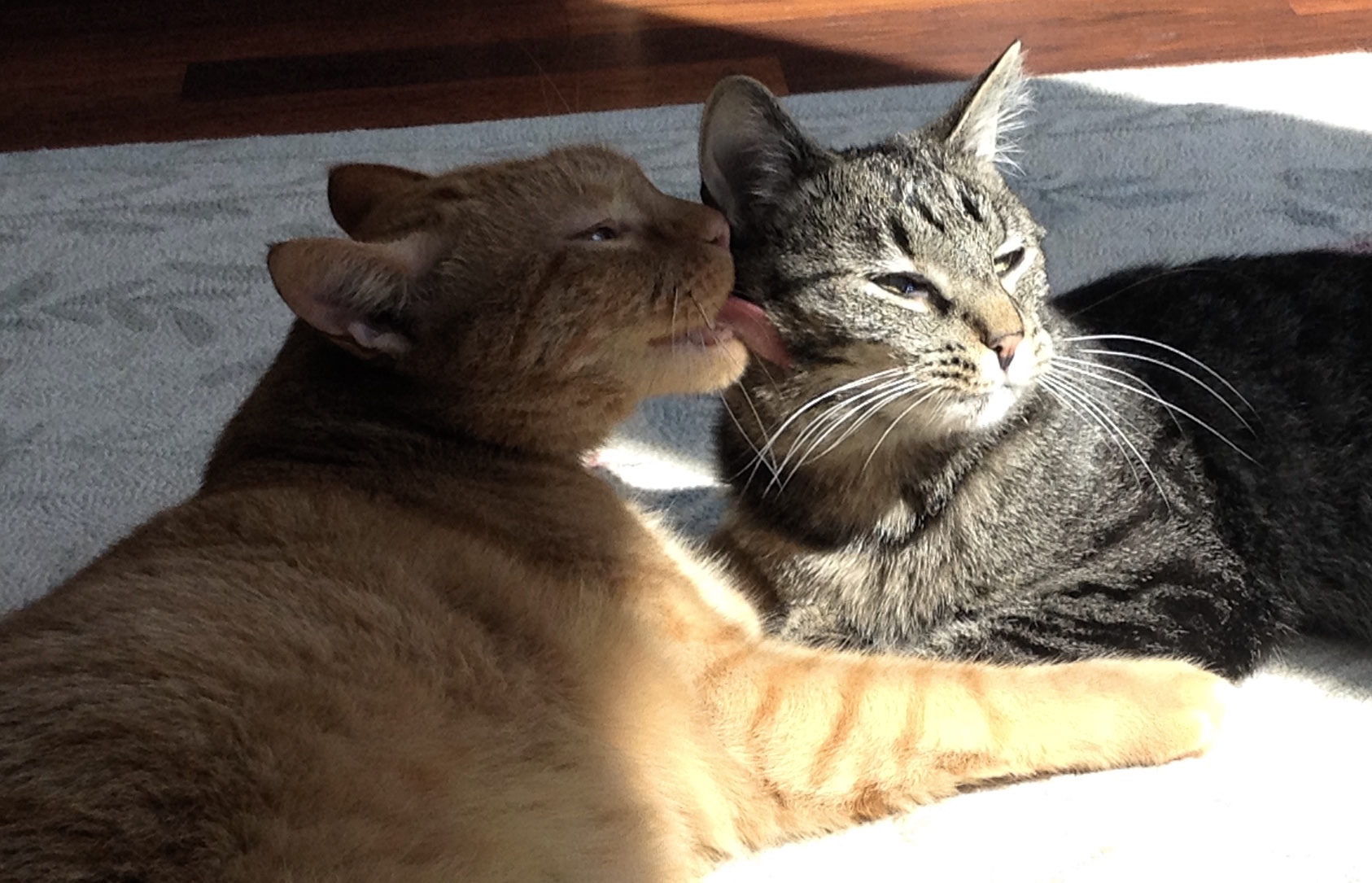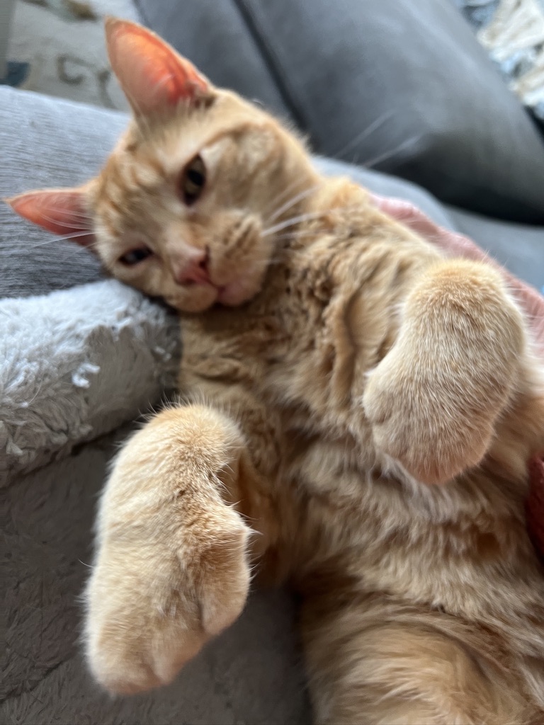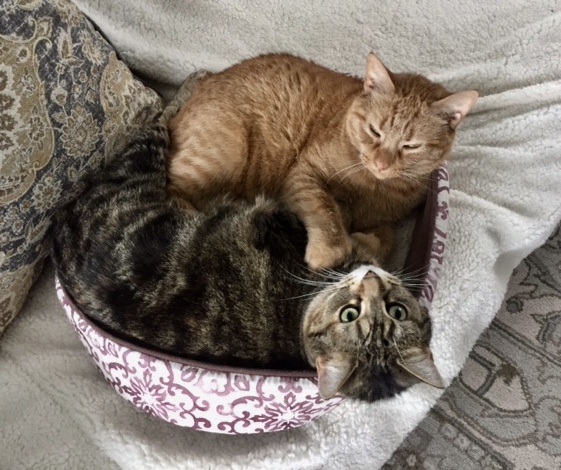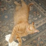 Paws was a stout little orange tabby with enormous feet ~ one those very special polydactly kitties with five toes on each front foot. He was a ferel , wild as could be, and showed up at our home, about 18 years ago. How fortunate for us!! He had the biggest purr and when he would purr, which was often, you could hear several rooms away. He was always the ‘happy guy’ and the kitty that was always in a good mood. In fact, we often would say we wanted to be more like Paws…He was a good role model for us. He was one of our kitties that got along with all of the other cats; they all loved him and he loved them all right back. He had a special relationship with Borus, another feral kitty that we had acquired, and they were often curled up in one of those small kitty beds, snuggled together, but barely fitting in the space, licking and grooming each other; it was so sweet to watch them loving up each other so sweetly.